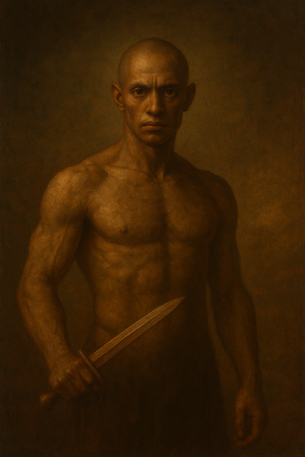 a painting of a man holding a knife