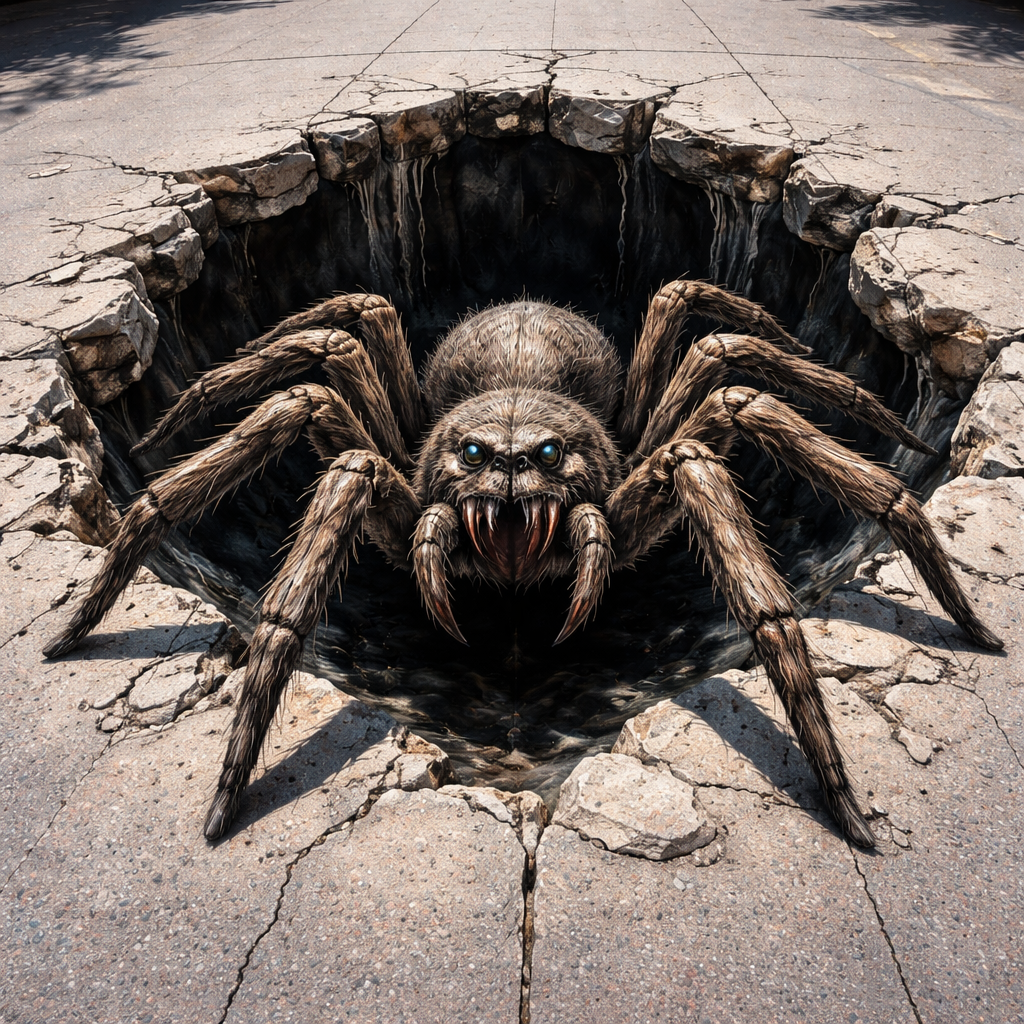 Un agujero, y que esté saliendo una araña gigante