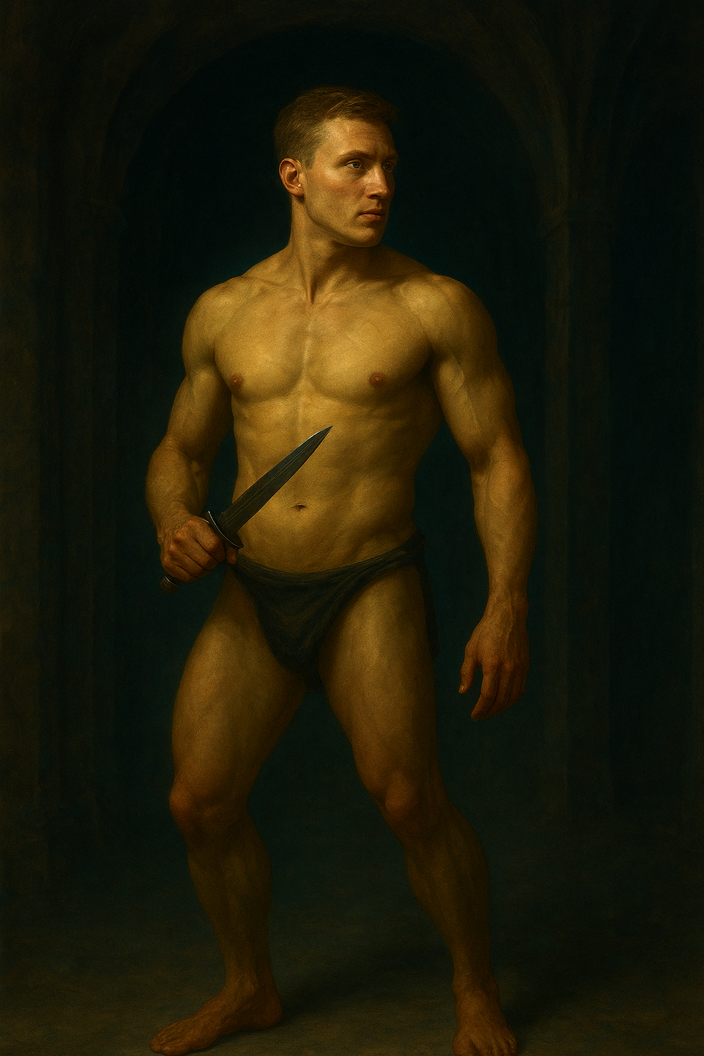a painting of a man with a knife in his hand