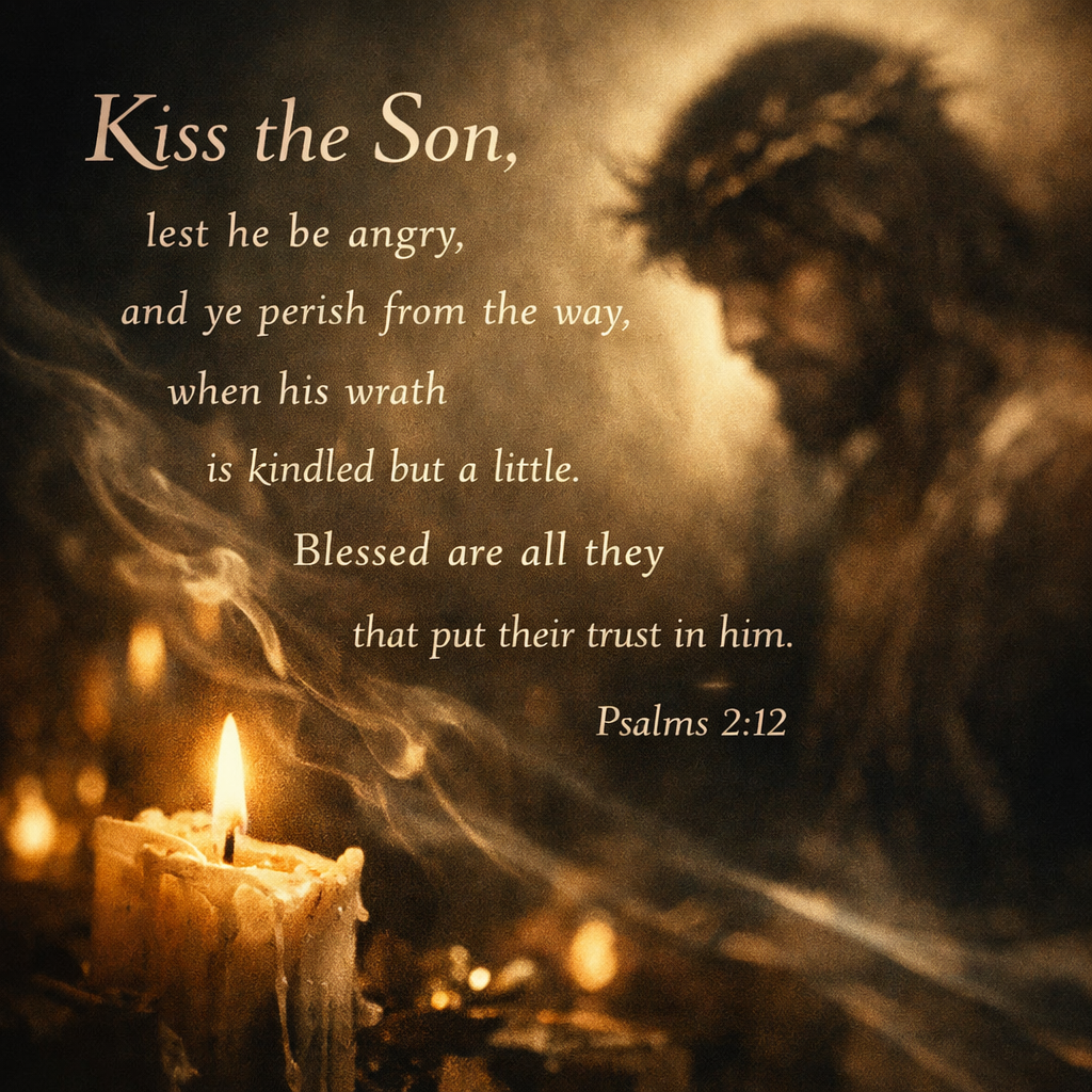 “Kiss the Son, lest he be angry, and ye perish from the way, when his wrath is kindled but a little. Blessed are all they that put their trust in him.” (Psalms 2:12, KJV)