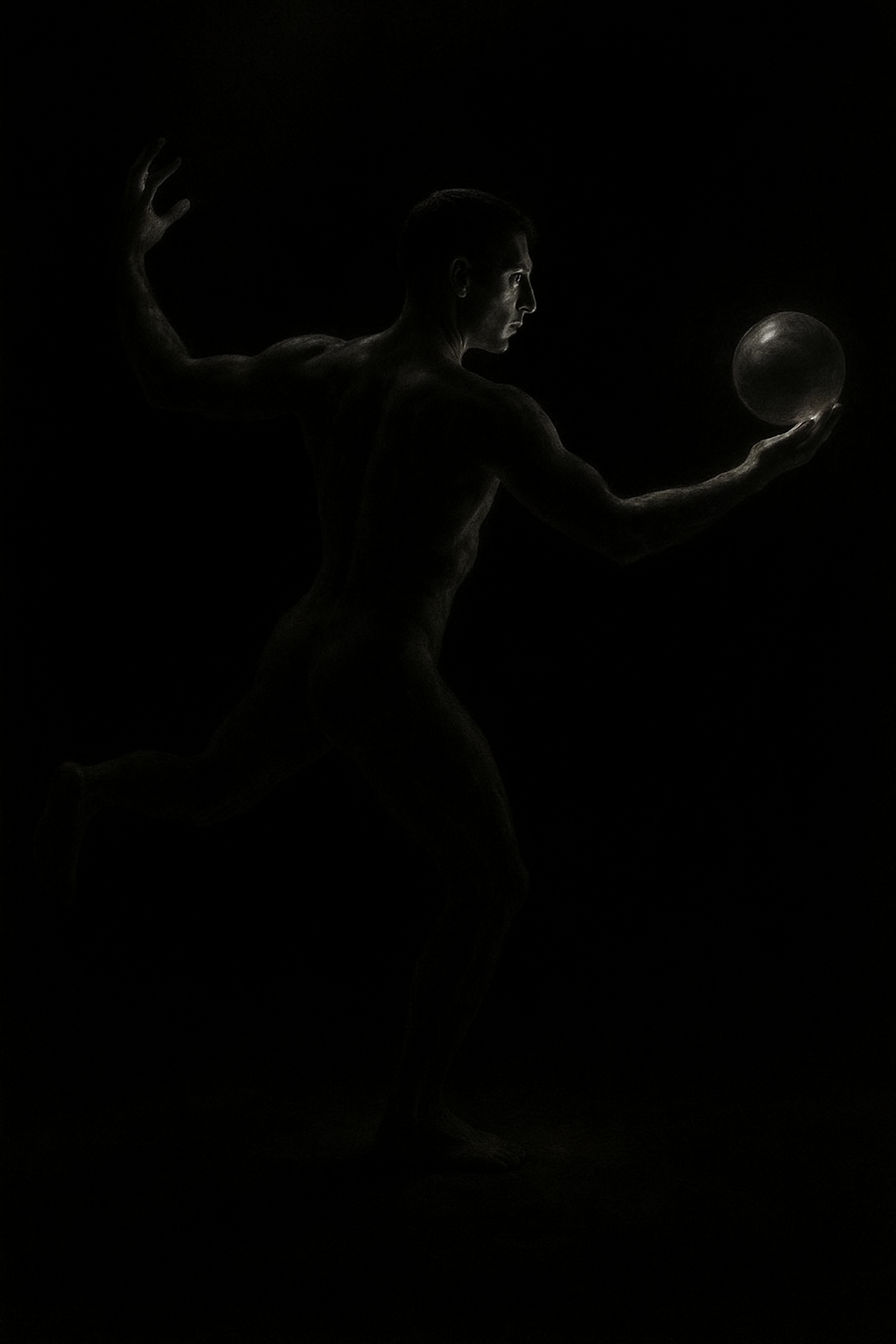 a black and white photo of a man playing with a ball