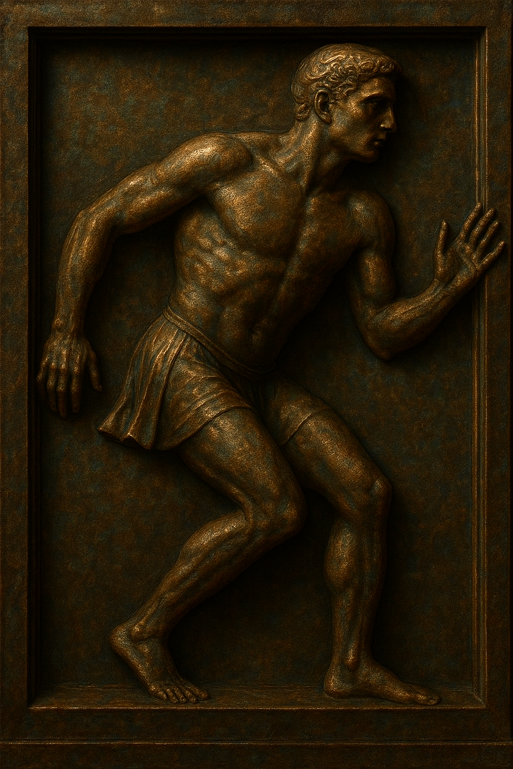 This bronze sculpture Renaissance art style captures three-dimensional form in painted illusion. Using dramatic lighting and metallic effects, it transforms flat surfaces into seemingly cast bronze monuments.