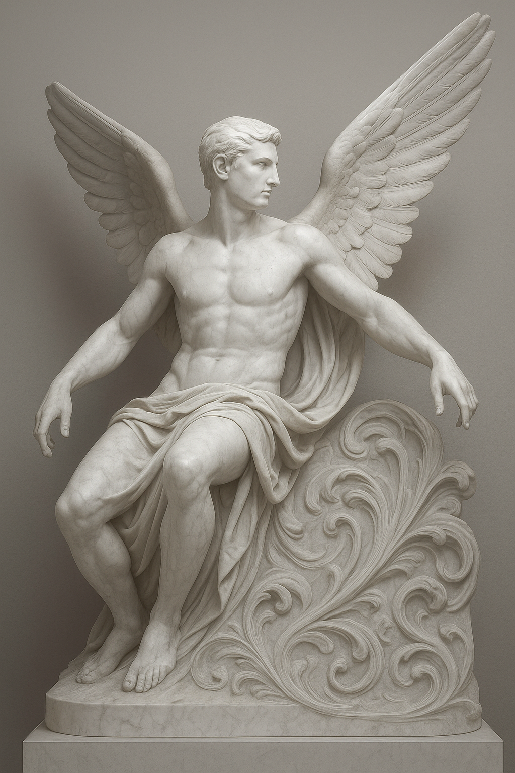 This classical marble sculpture art style embodies Renaissance and Greco-Roman traditions with idealized human forms. Featuring smooth, polished surfaces, anatomical precision, and dramatic drapery, it creates timeless elegance in white stone.