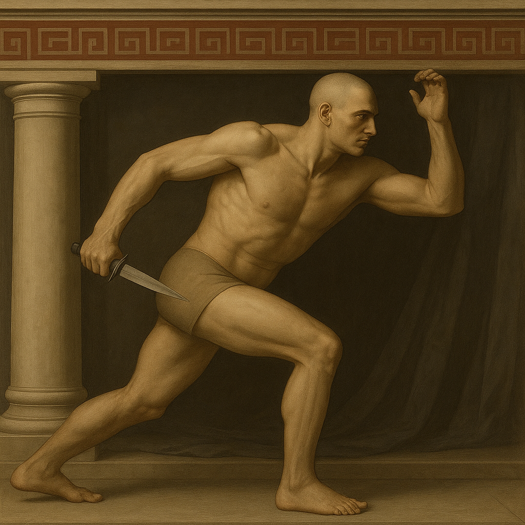a painting of a man with a knife in his hand