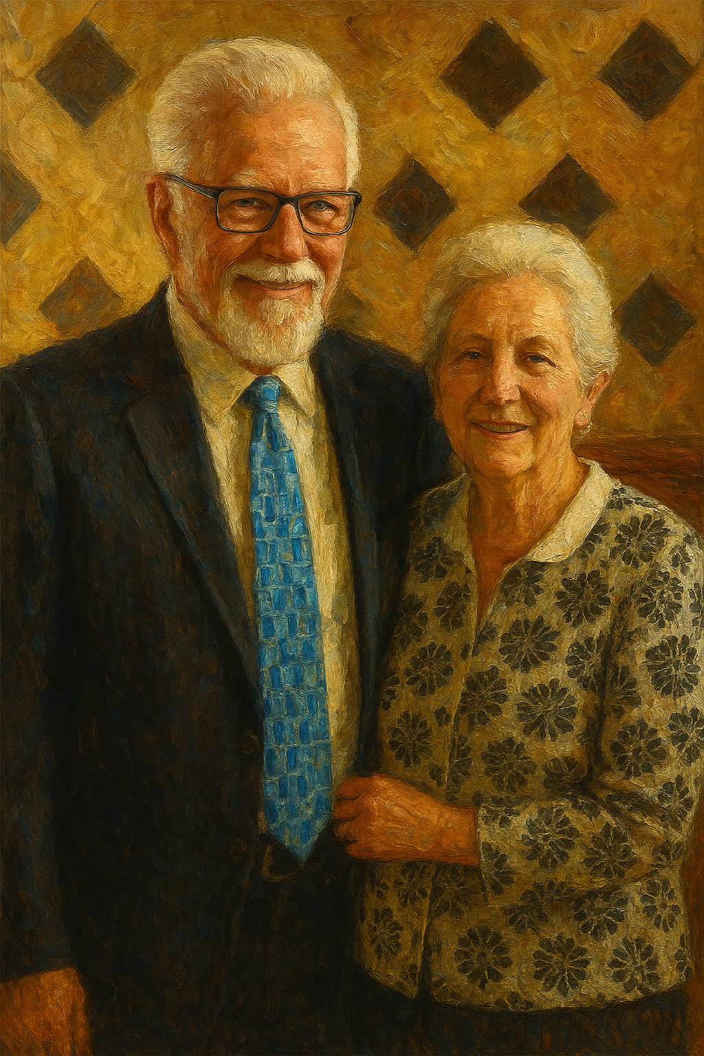 a painting of an older couple posing for a picture
