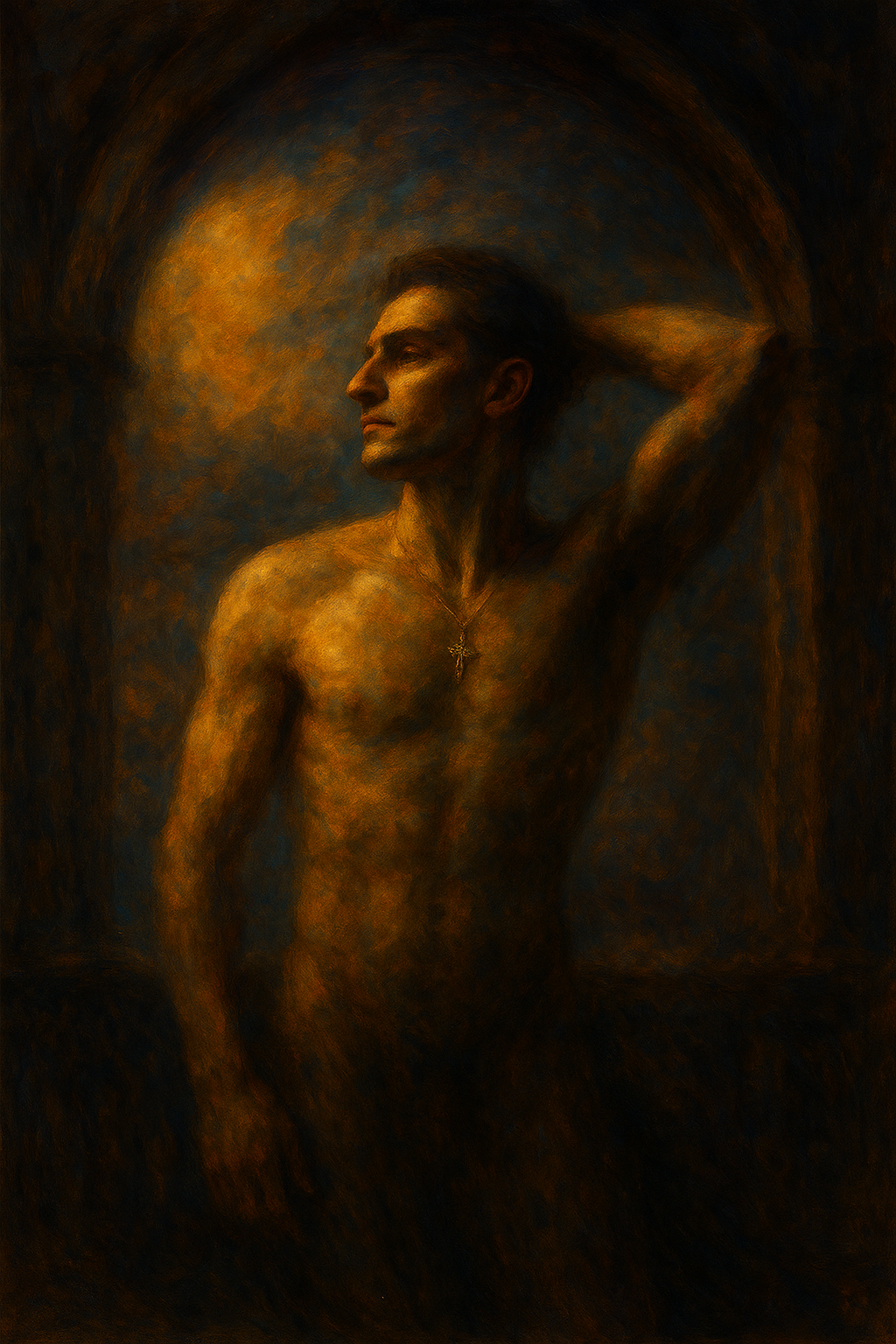 a painting of a man with no shirt on