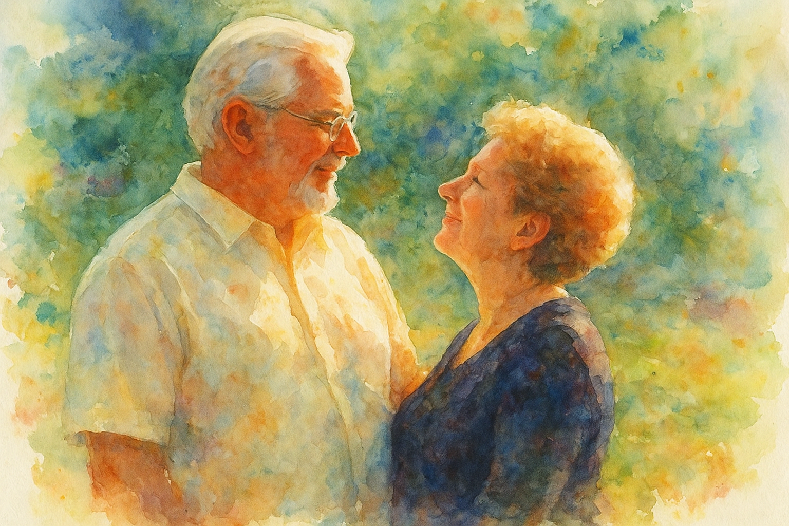 a watercolor painting of a man and a woman