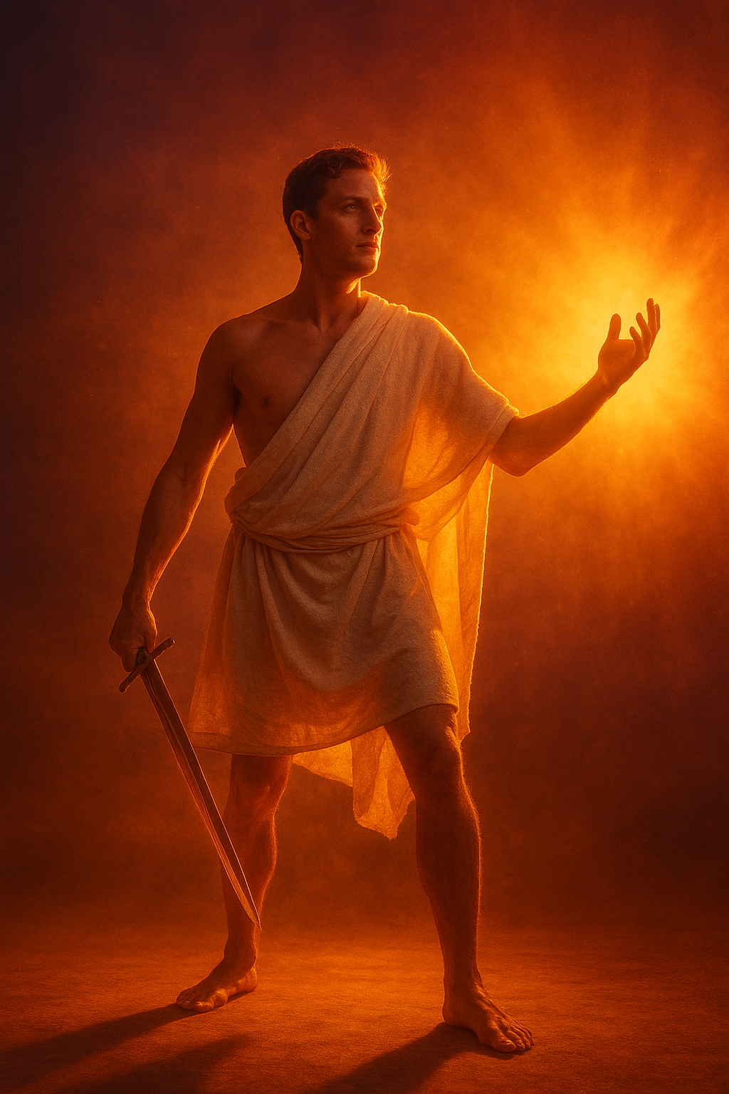 a man in a white robe holding a stick