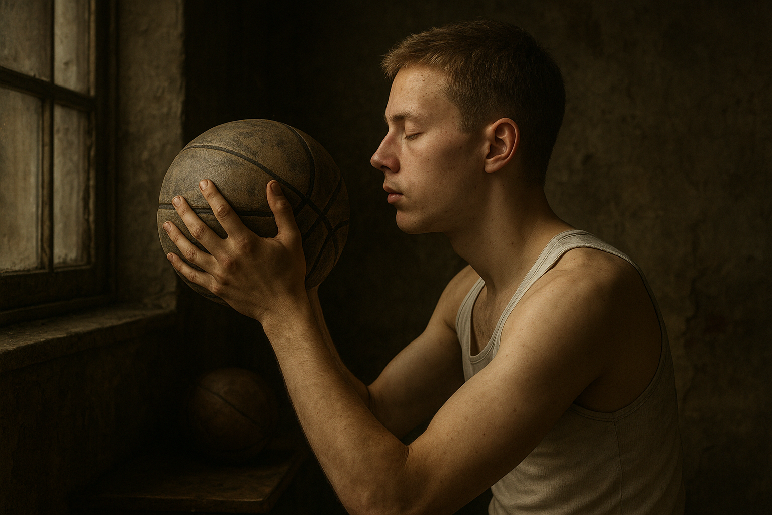 a man holding a basketball in his right hand