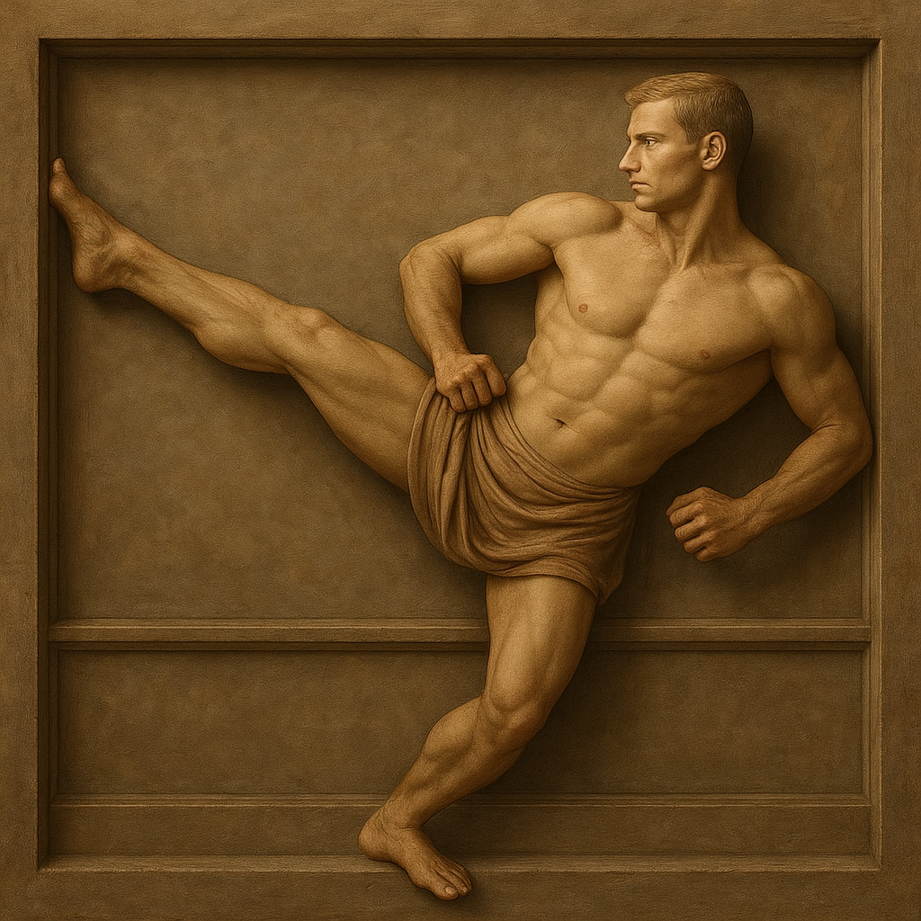 a painting of a man with no shirt on