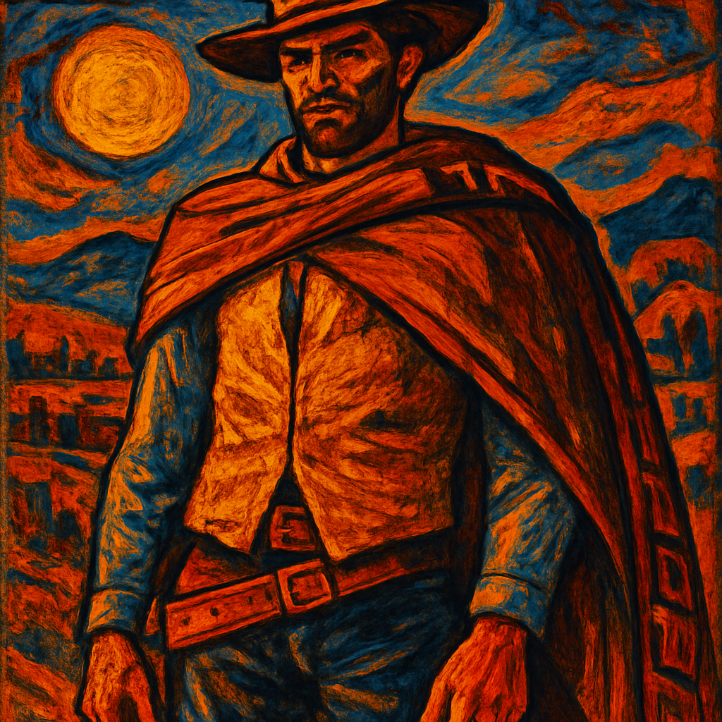 a painting of a man wearing a hat and a scarf