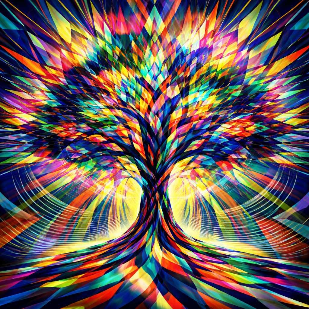 Geometric designs suggesting movement and optical vibration through pattern, repetition, and color relationships.