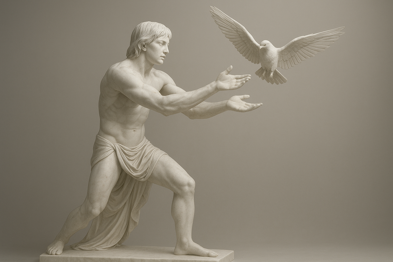 This classical marble sculpture art style embodies Renaissance and Greco-Roman traditions with idealized human forms. Featuring smooth, polished surfaces, anatomical precision, and dramatic drapery, it creates timeless elegance in white stone.