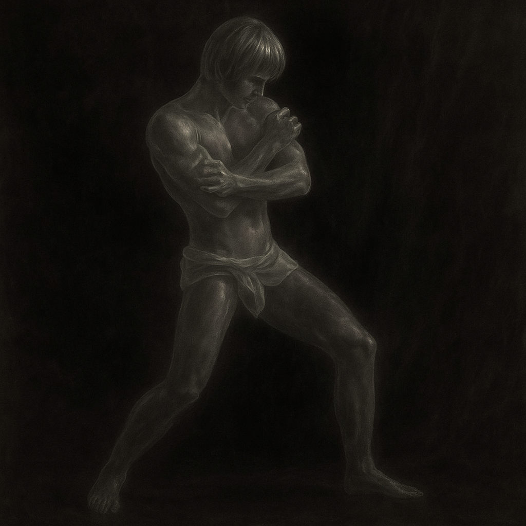 a black and white drawing of a man with his arms crossed