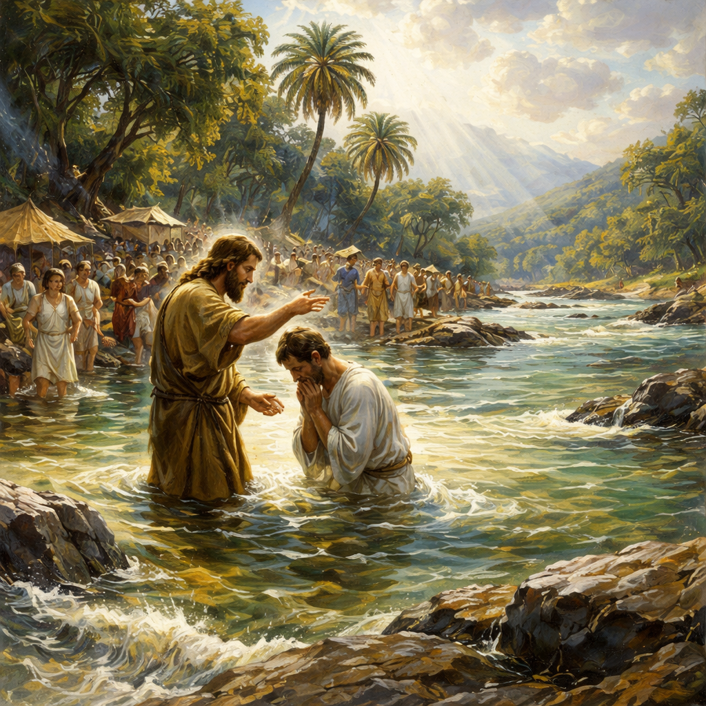 Express without words “These things were done in Bethabara beyond Jordan, where John was baptizing.” (John 1:28, KJV) in a setting where there is a Ford in the river.