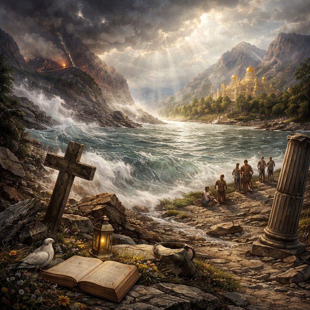 “Therefore will not we fear, though the earth be removed, and though the mountains be carried into the midst of the sea; Though the waters thereof roar and be troubled, though the mountains shake with the swelling thereof. Selah. There is a river, the streams whereof shall make glad the city of God, the holy place of the tabernacles of the most High. God is in the midst of her; she shall not be moved: God shall help her, and that right early.” (Psalms 46:2-5, KJV)