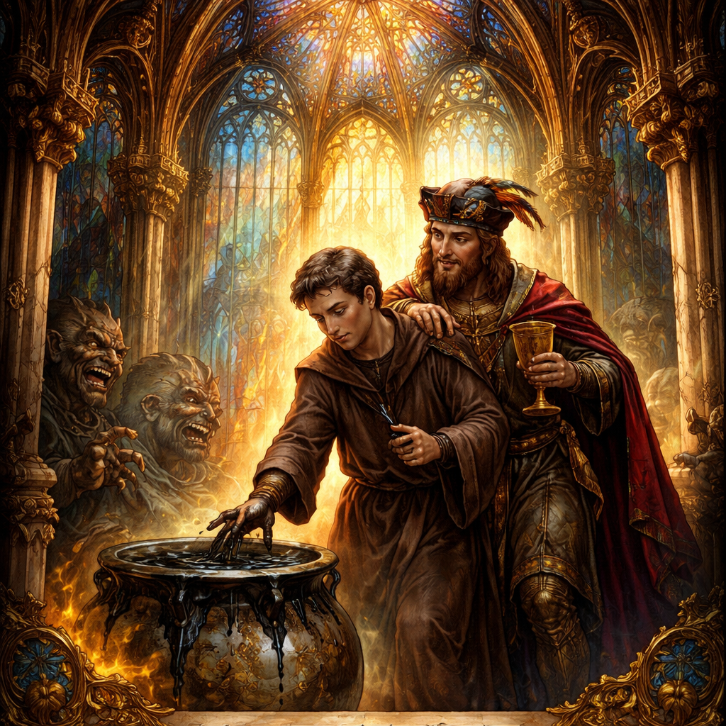 Sacred Gothic art focusing on the spiritual grandeur of Gothic cathedrals, including stained glass, religious sculptures, and divine light.