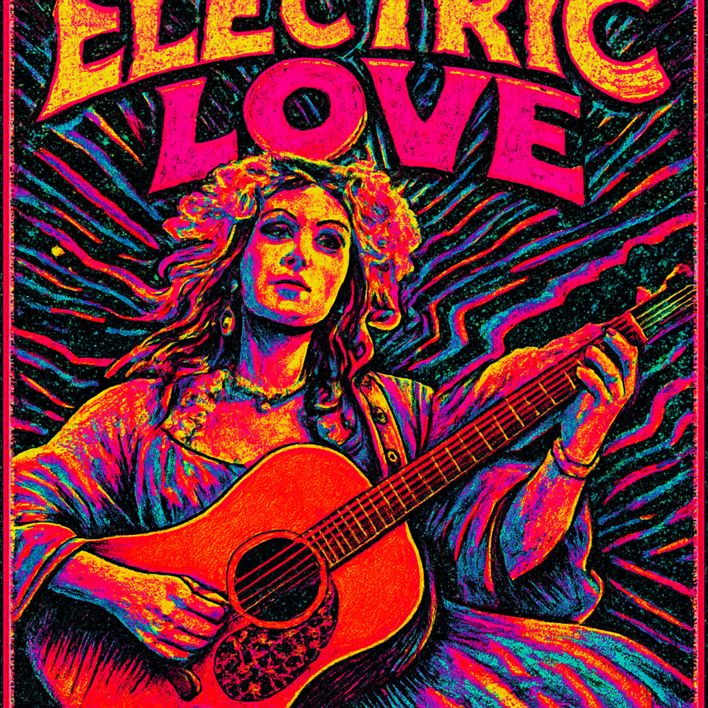 a poster of a woman playing a guitar