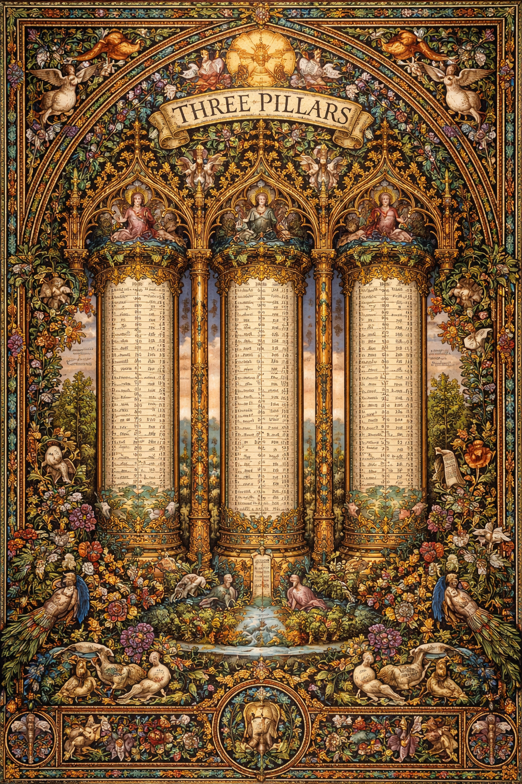 Do not use words to create an image of Three Pillars blog which is a word count for each chapter in the Bible