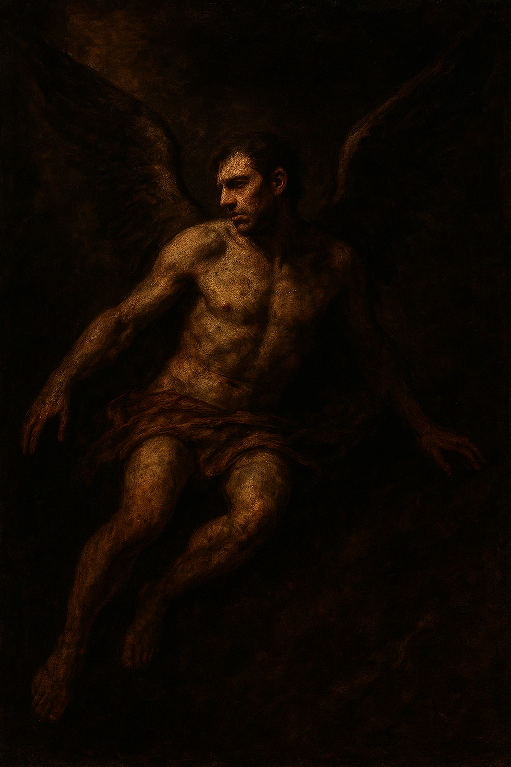 a painting of a man with an angel on his back