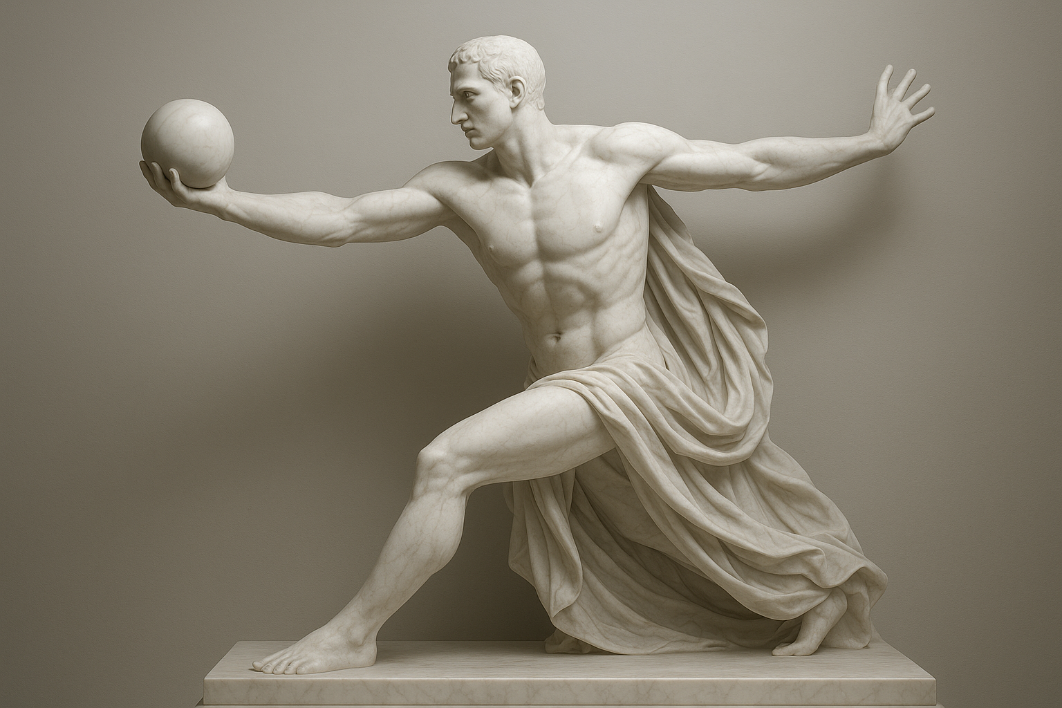 a statue of a man holding a ball