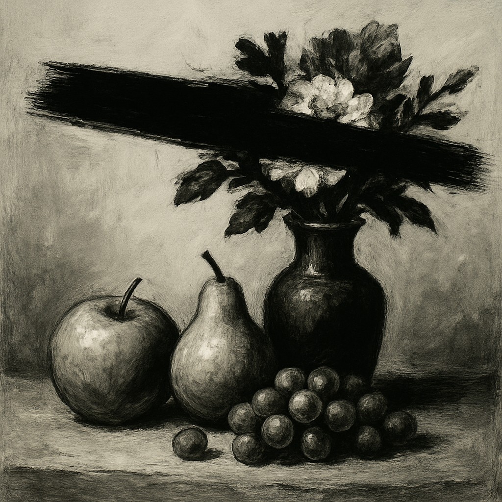 still life arrangement of fruits and flowers