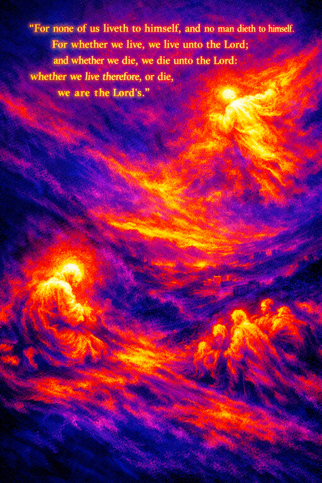 “For none of us liveth to himself, and no man dieth to himself. For whether we live, we live unto the Lord; and whether we die, we die unto the Lord: whether we live therefore, or die, we are the Lord's.” (Romans 14:7-8, KJVA)