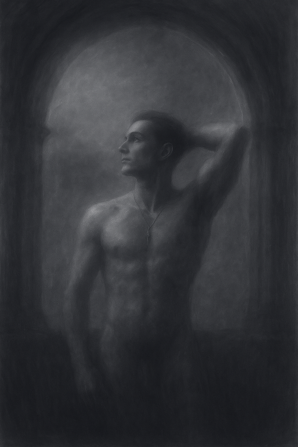 a black and white photo of a naked man