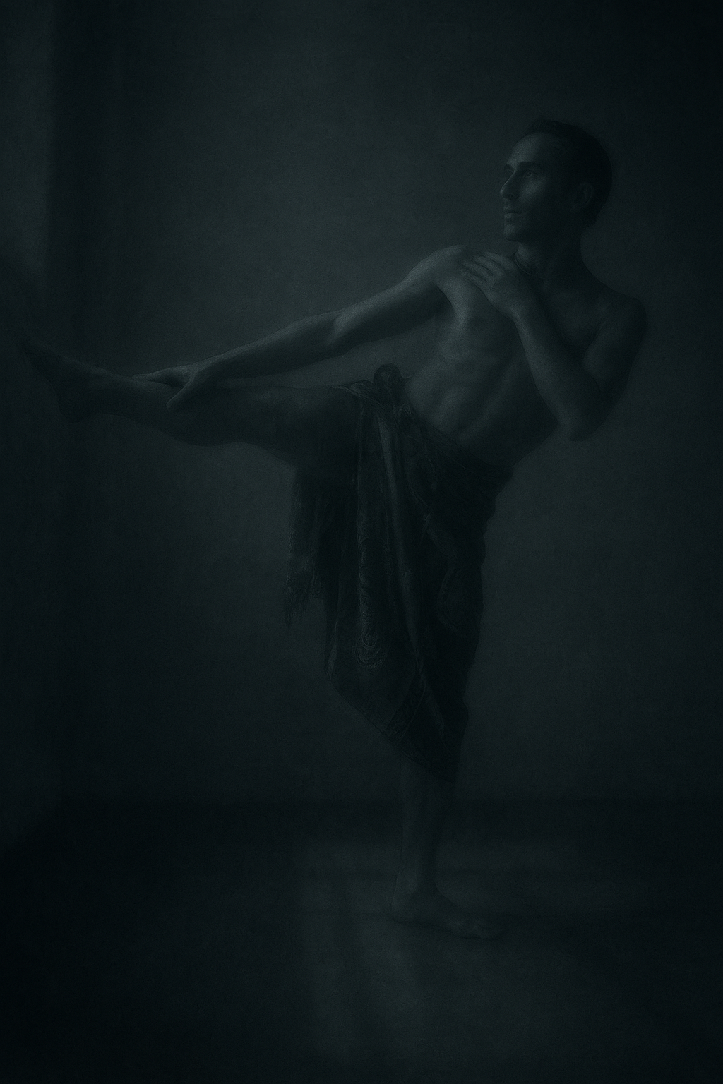 a man with a towel on his head is dancing in the dark