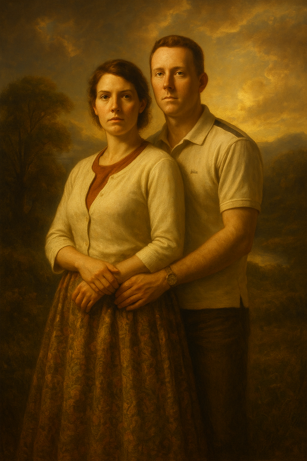 a painting of a man and woman standing next to each other