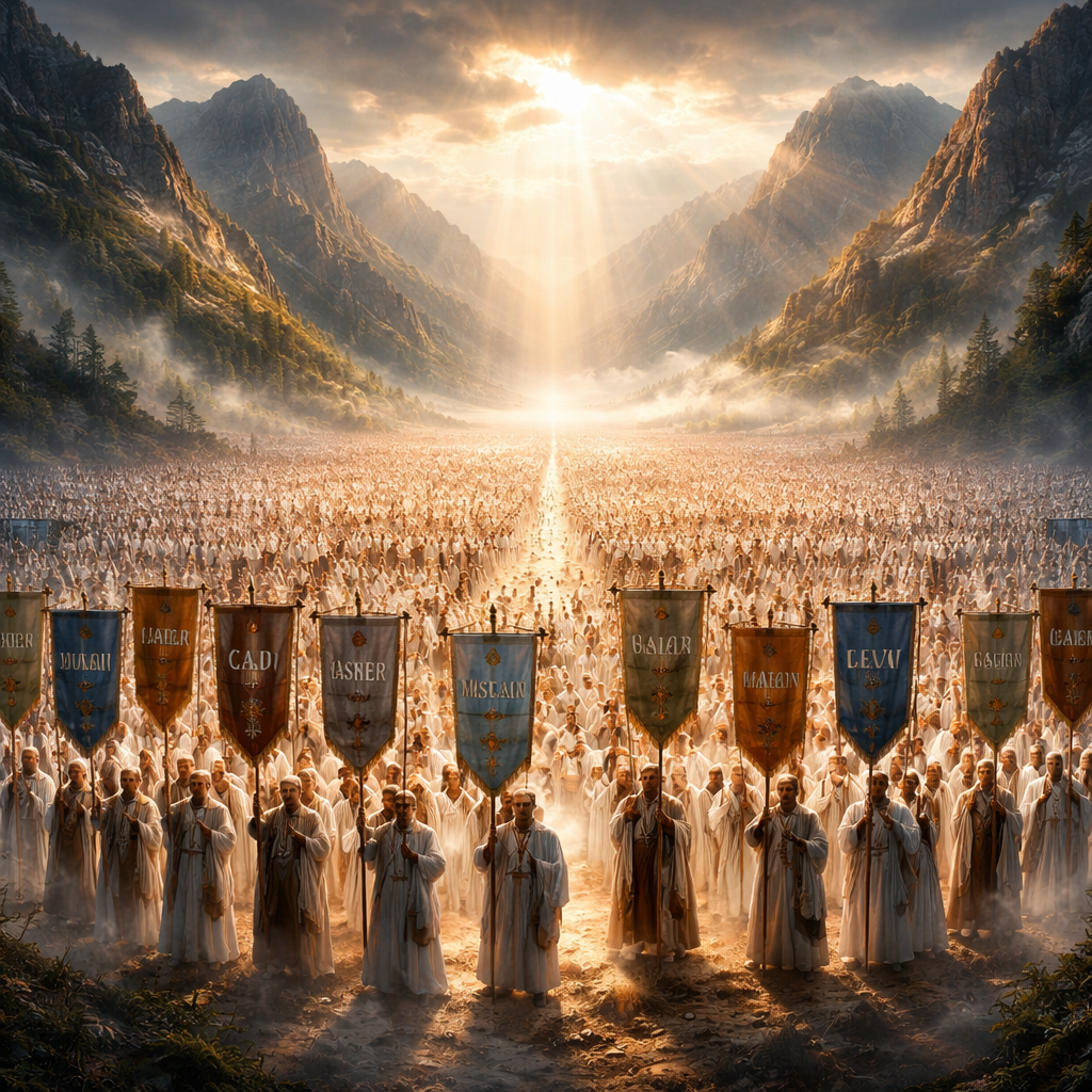 “And I heard the number of them which were sealed: and there were sealed an hundred and forty and four thousand of all the tribes of the children of Israel. Of the tribe of Juda were sealed twelve thousand. Of the tribe of Reuben were sealed twelve thousand. Of the tribe of Gad were sealed twelve thousand. Of the tribe of Aser were sealed twelve thousand. Of the tribe of Nepthalim were sealed twelve thousand. Of the tribe of Manasses were sealed twelve thousand. Of the tribe of Simeon were sealed twelve thousand. Of the tribe of Levi were sealed twelve thousand. Of the tribe of Issachar were sealed twelve thousand. Of the tribe of Zabulon were sealed twelve thousand. Of the tribe of Joseph were sealed twelve thousand. Of the tribe of Benjamin were sealed twelve thousand.” (Revelation 7:4-8, KJV)