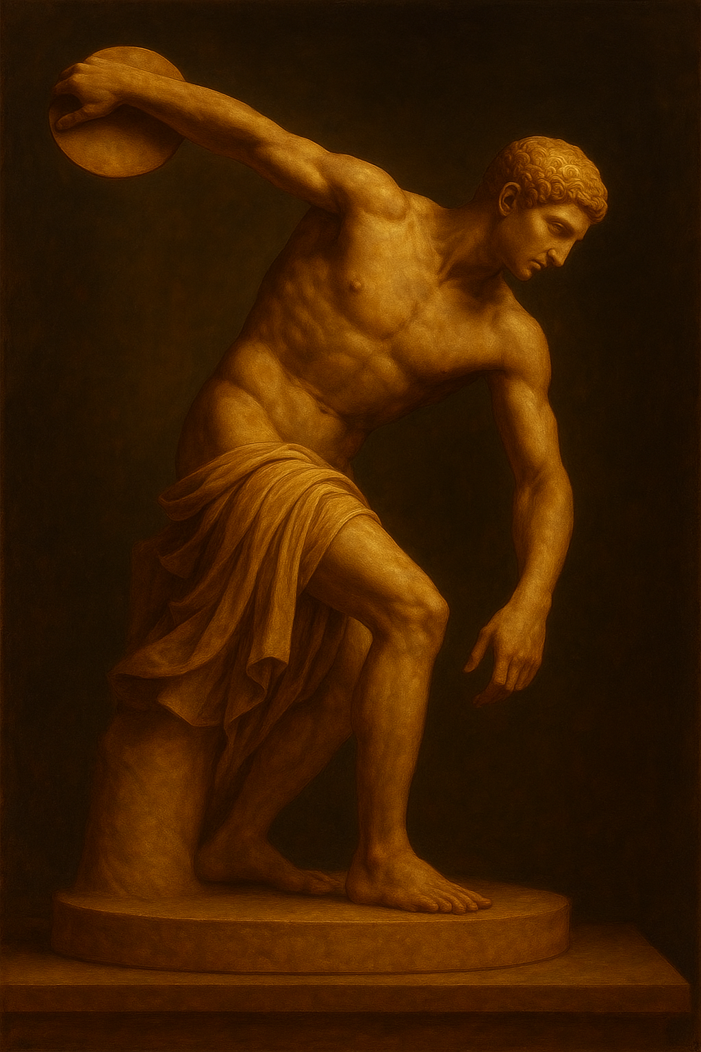 a painting of a man with a disc in his hand