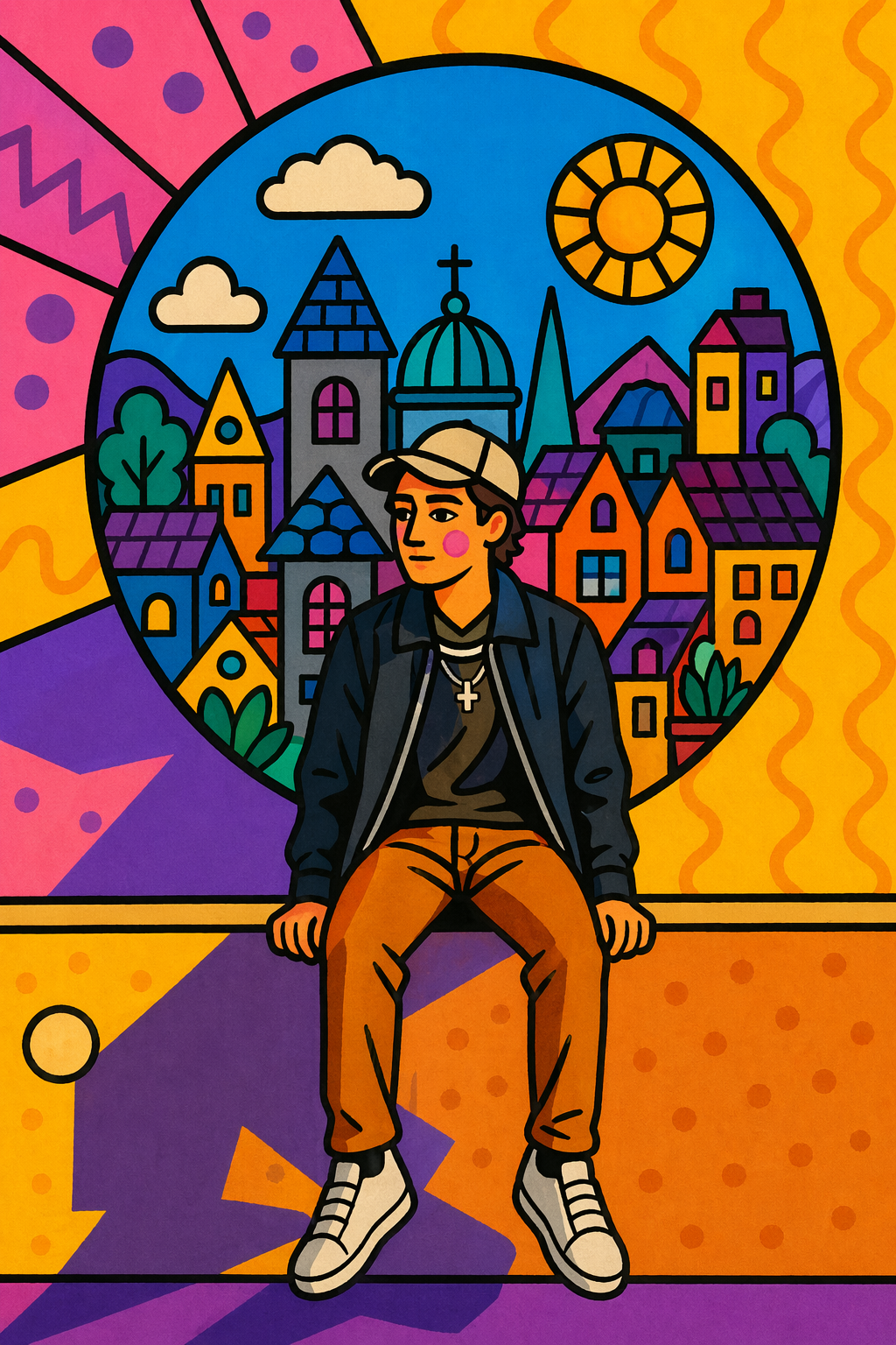 Vibrant cartoon illustration with bold black outlines and electric color blocking
