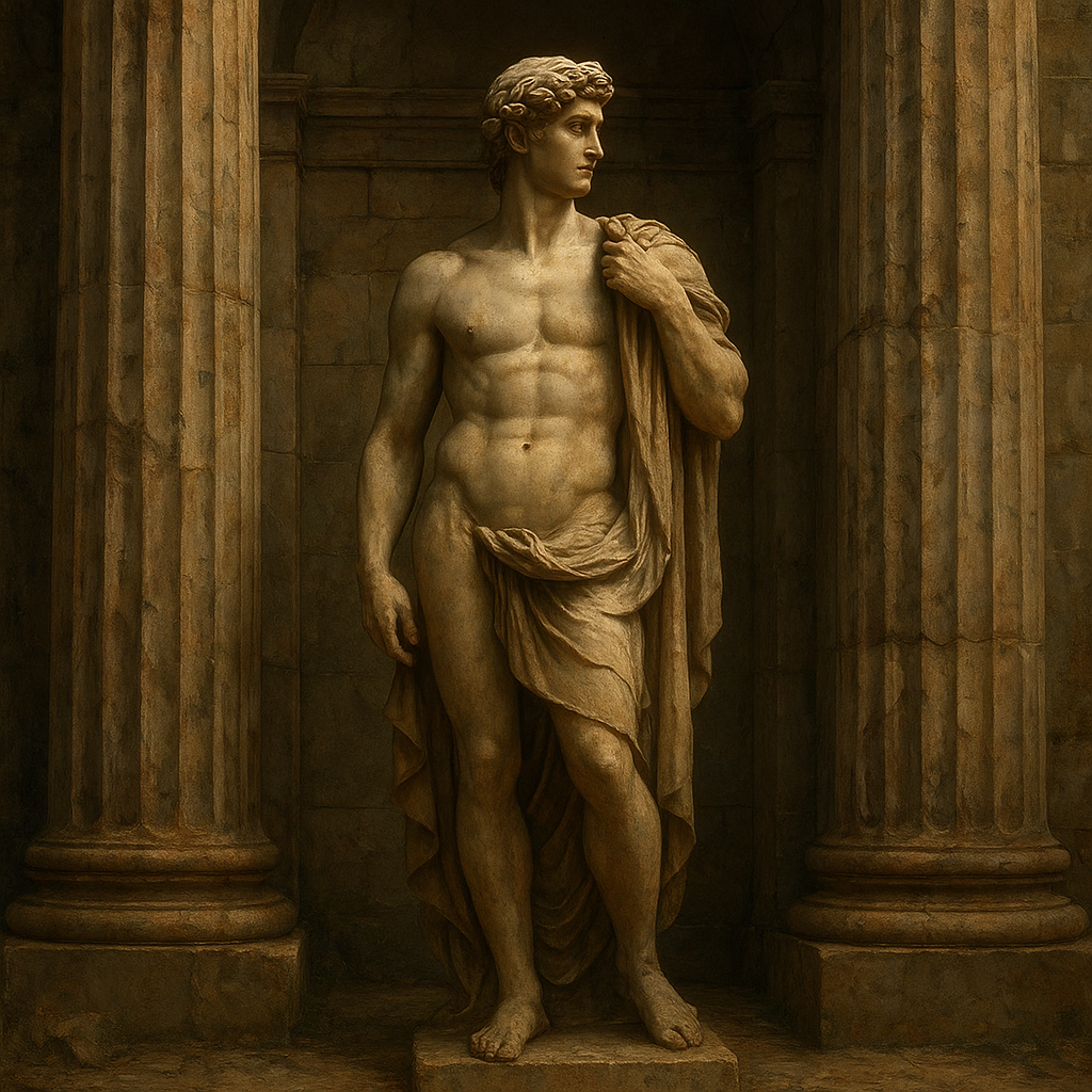 a statue of a man holding a cloth