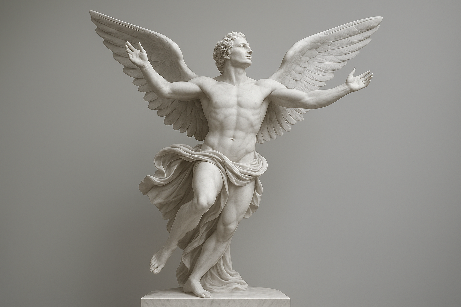 a statue of a man with wings on a pedestal