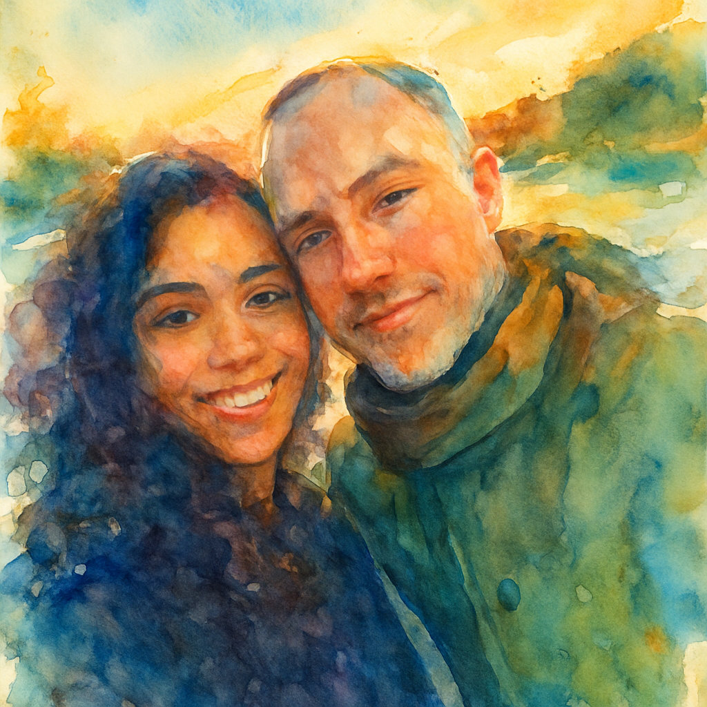 a watercolor painting of a man and a woman
