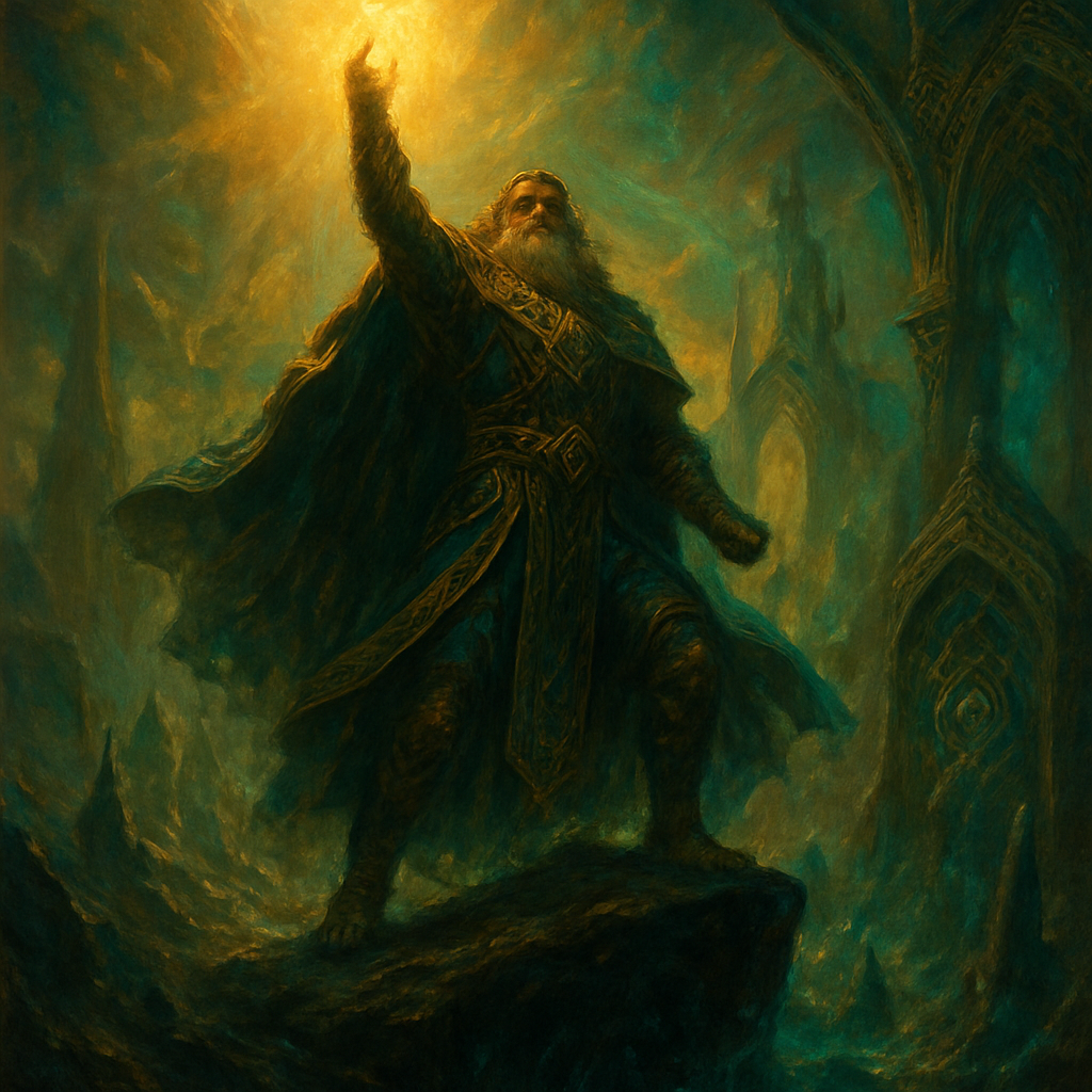 Grand-scale fantasy scenes featuring heroes, dragons, magic, and vast mystical landscapes. This style draws from classic high fantasy literature and games.