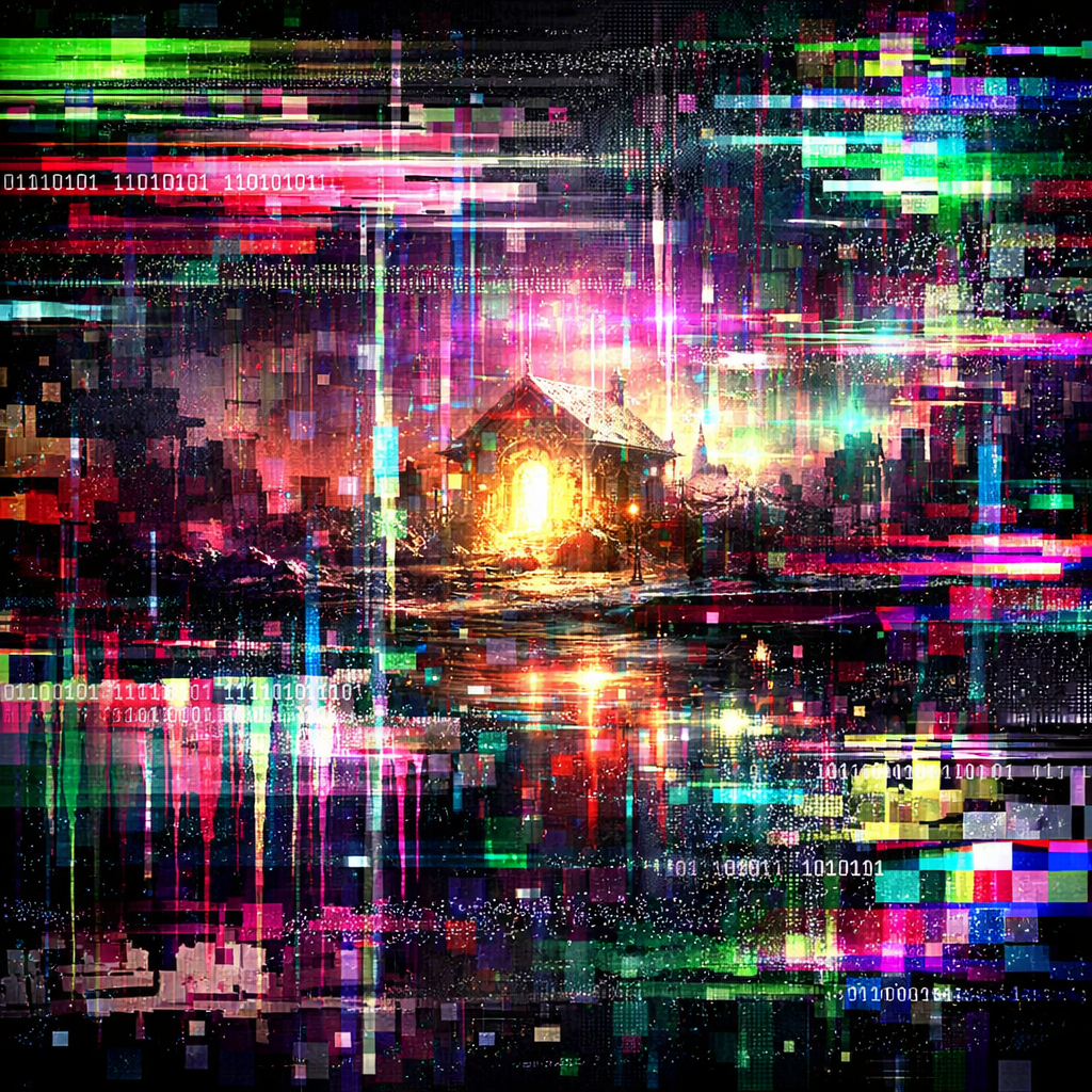 This digital glitch abstract art style embraces technological errors as artistic expression. Using databending, pixel sorting, and compression artifacts, it transforms digital imperfections into contemporary abstract compositions.