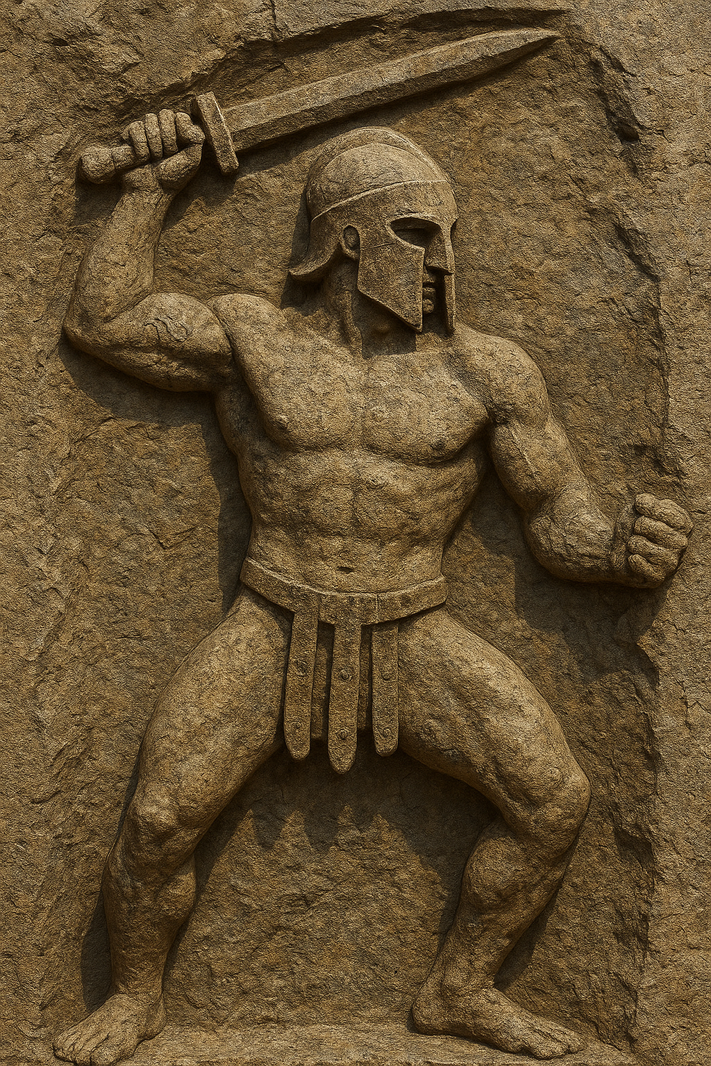 a statue of a spartan holding a sword