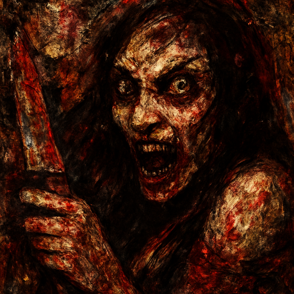 a painting of a zombie holding a knife