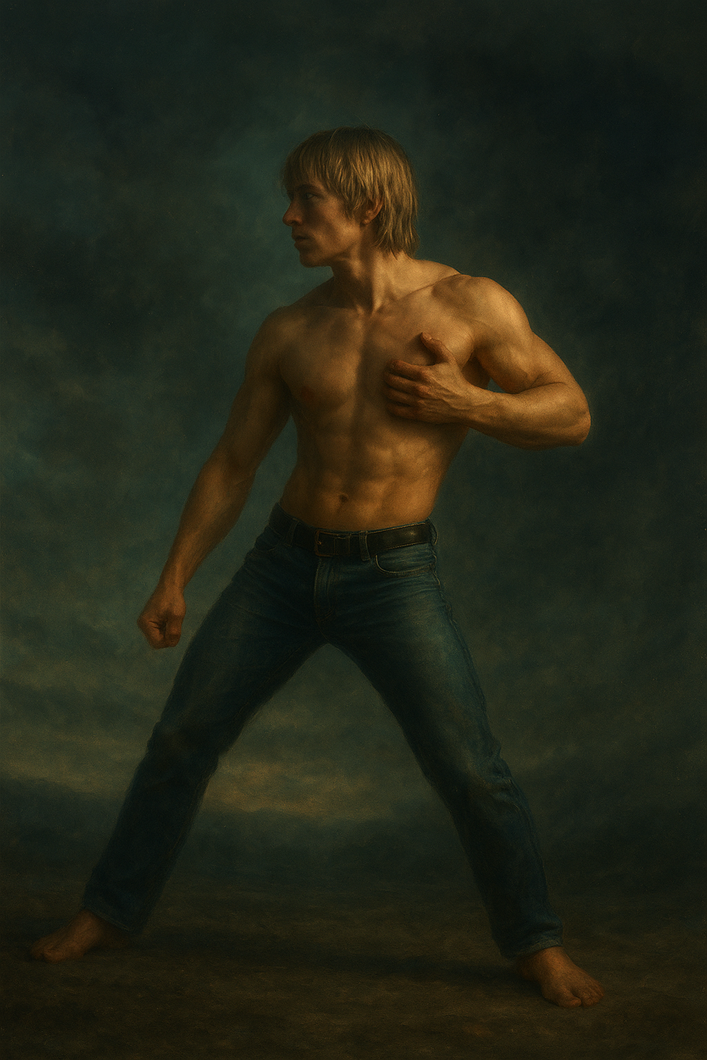 a man with no shirt is posing for a picture