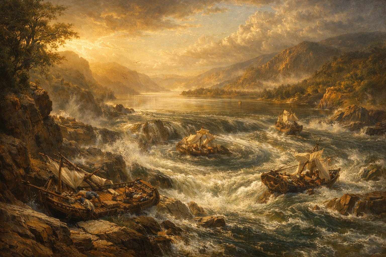 Now, those captains must learn what the river will do when it makes that great turn out of sight. How it dashes them up on the rocks of the shore How it spins to the left and the right. It beats them and breaks them and crushes their pride Leaves them dizzy and sick and all jumbled inside ‘til they’ve all but forgotten that glorious ride lying flat on their deck in the sun. There they lie, drying out in the sun. As you round the point where the river was bent and survey the great wideness ahead, you can see all those captains alone on their decks, beat and broken and very near dead. Then the current takes hold and there’s naught you can do as it drags you down into its maw. Headed straight for those rocks, you make ready to crash but at last, you rise up, roll and yaw. Going back and away, then forward again, fearing each time, the rocks will prevail! You’re trapped in a cycling, circling tide, in an eddy withstanding a gale. But each time you circle that great whirling tide and you’ve not hit the rocks or been thrown to the side and you’re kept from the falls, cascading and wide, for the eddy’s small mercy give praise. Give the merciful currents your praise!