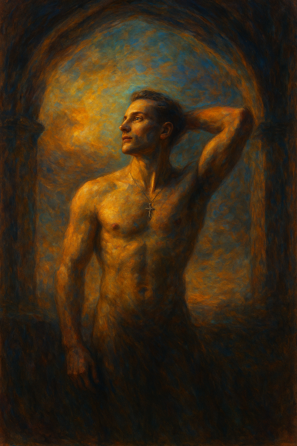 a painting of a man with no shirt on