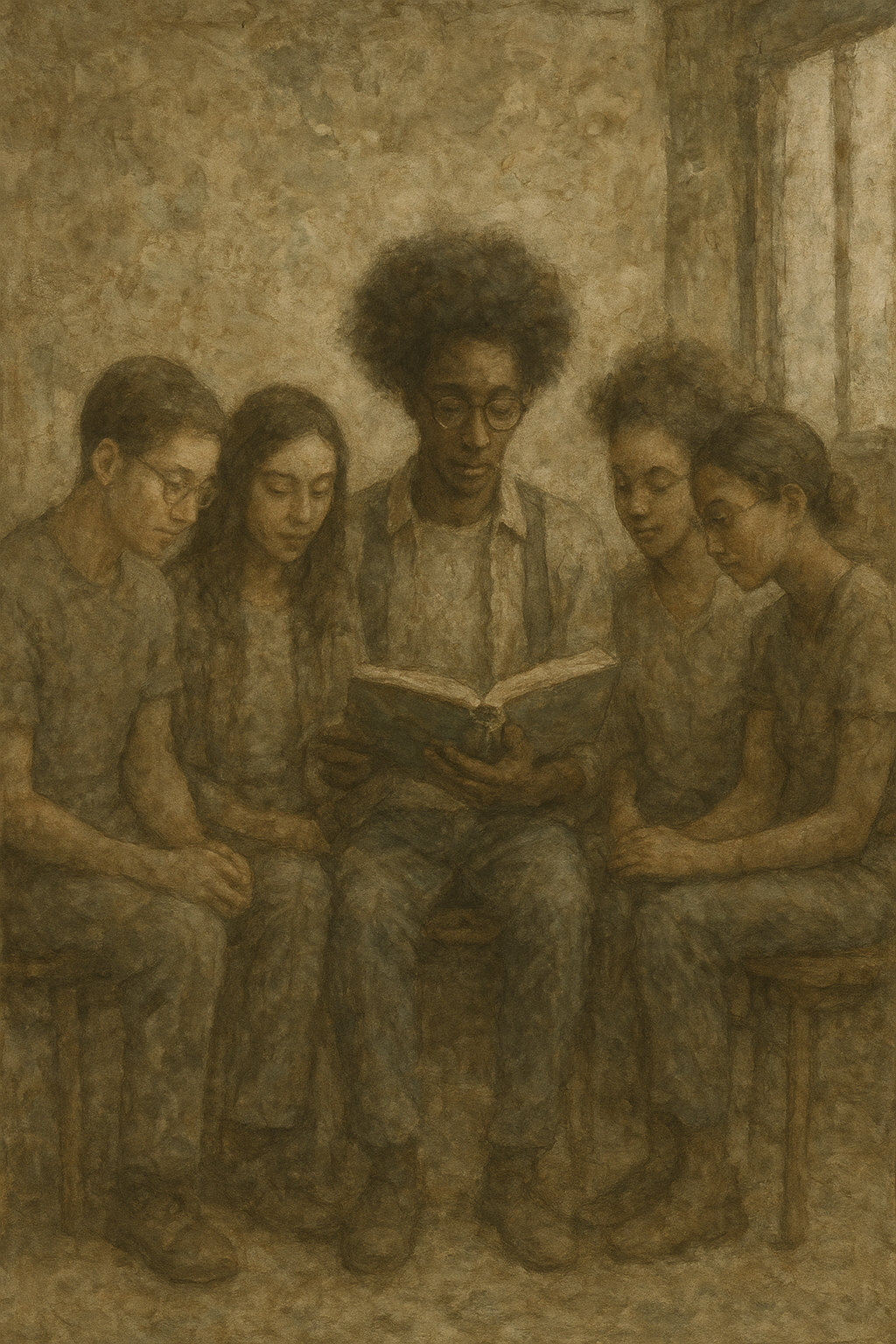 a group of people sitting next to each other