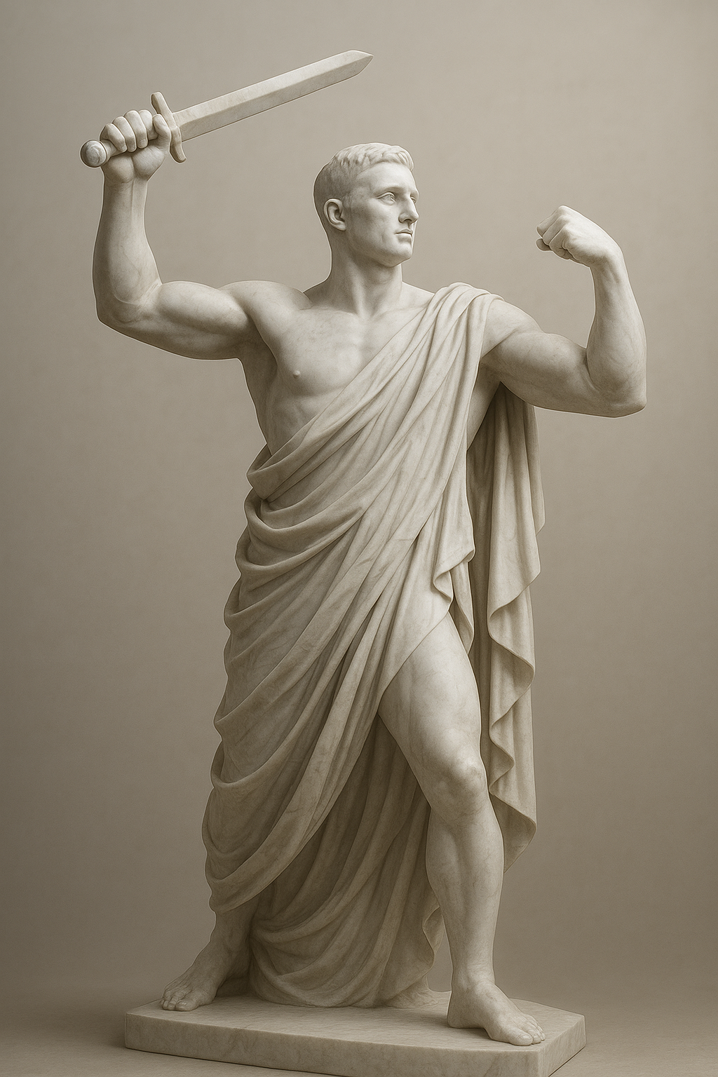 a statue of a man holding a sword