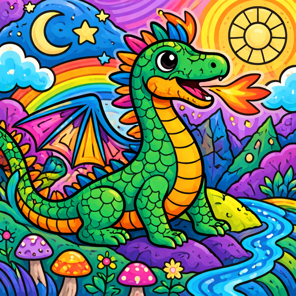 Vibrant cartoon illustration with bold black outlines and electric color blocking