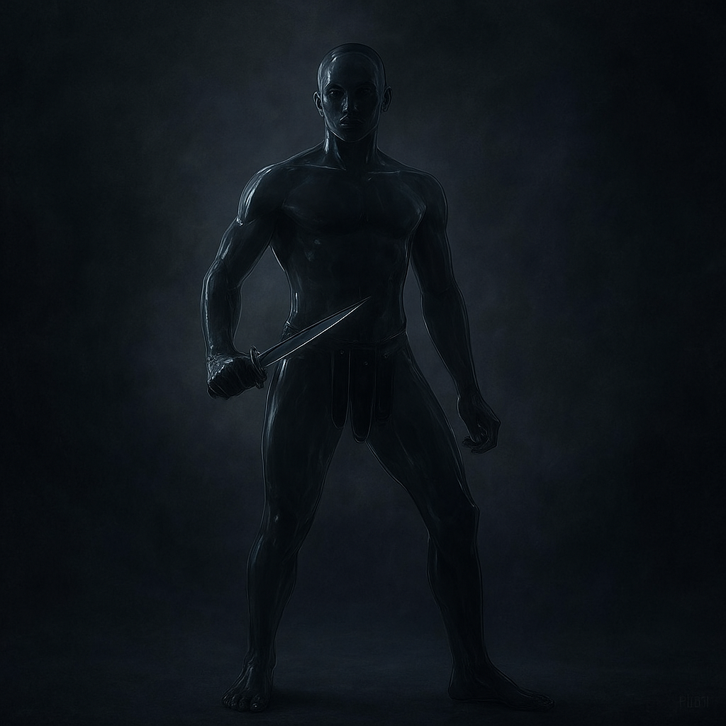 a man with a knife standing in the dark