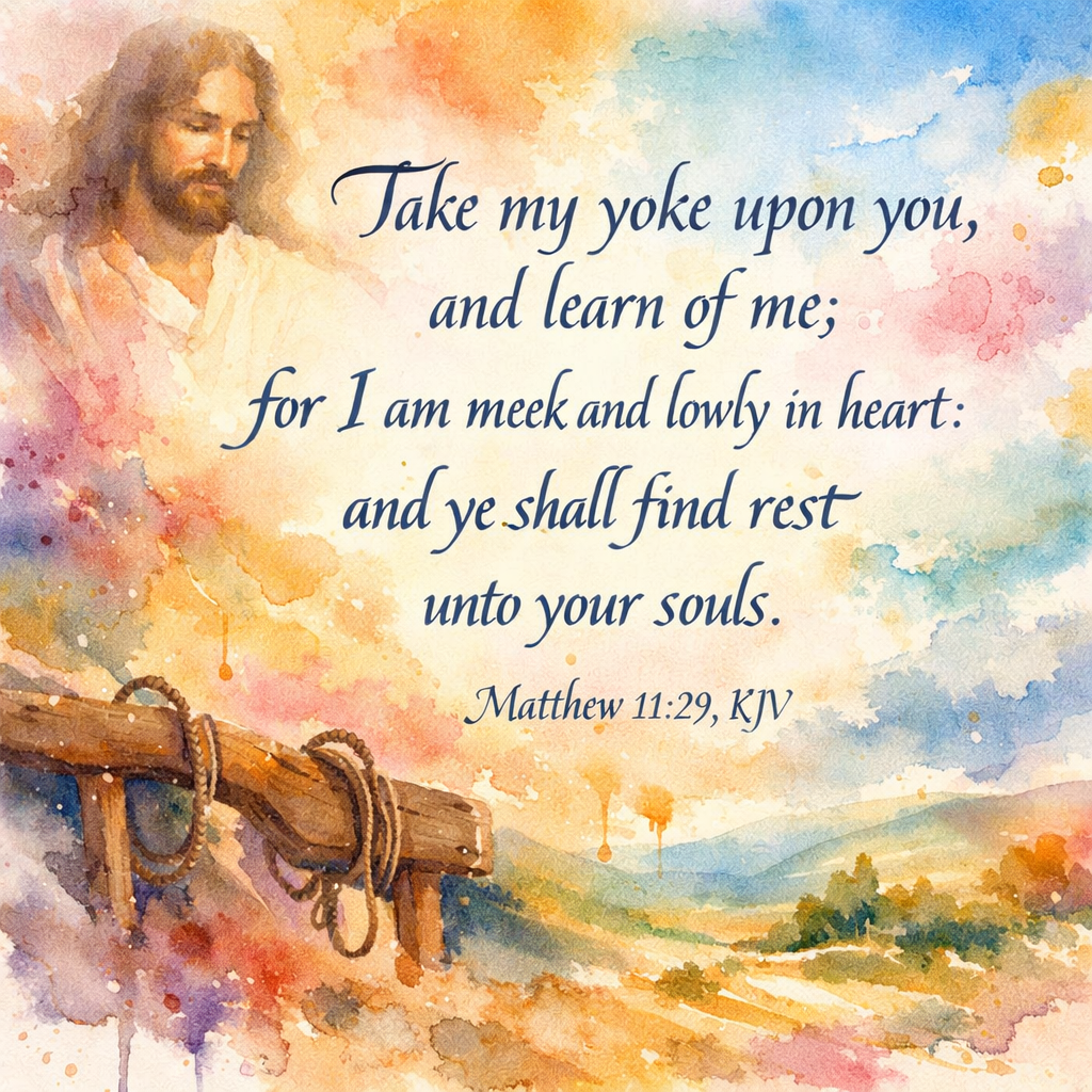 “Take my yoke upon you, and learn of me; for I am meek and lowly in heart: and ye shall find rest unto your souls.” (Matthew 11:29, KJV)