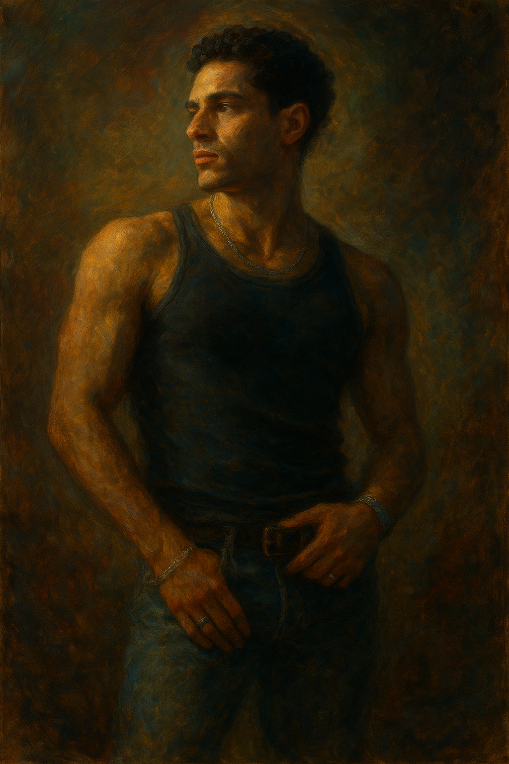 a painting of a man in a tank top