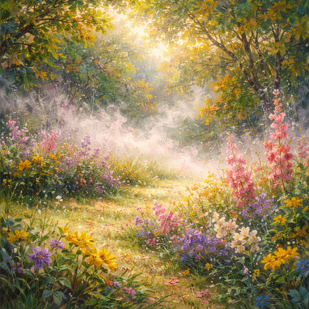 This garden impressionism art style celebrates cultivated nature through loose, joyful brushwork. Focusing on color relationships over botanical accuracy, it transforms gardens into symphonies of interweaving hues and textures.